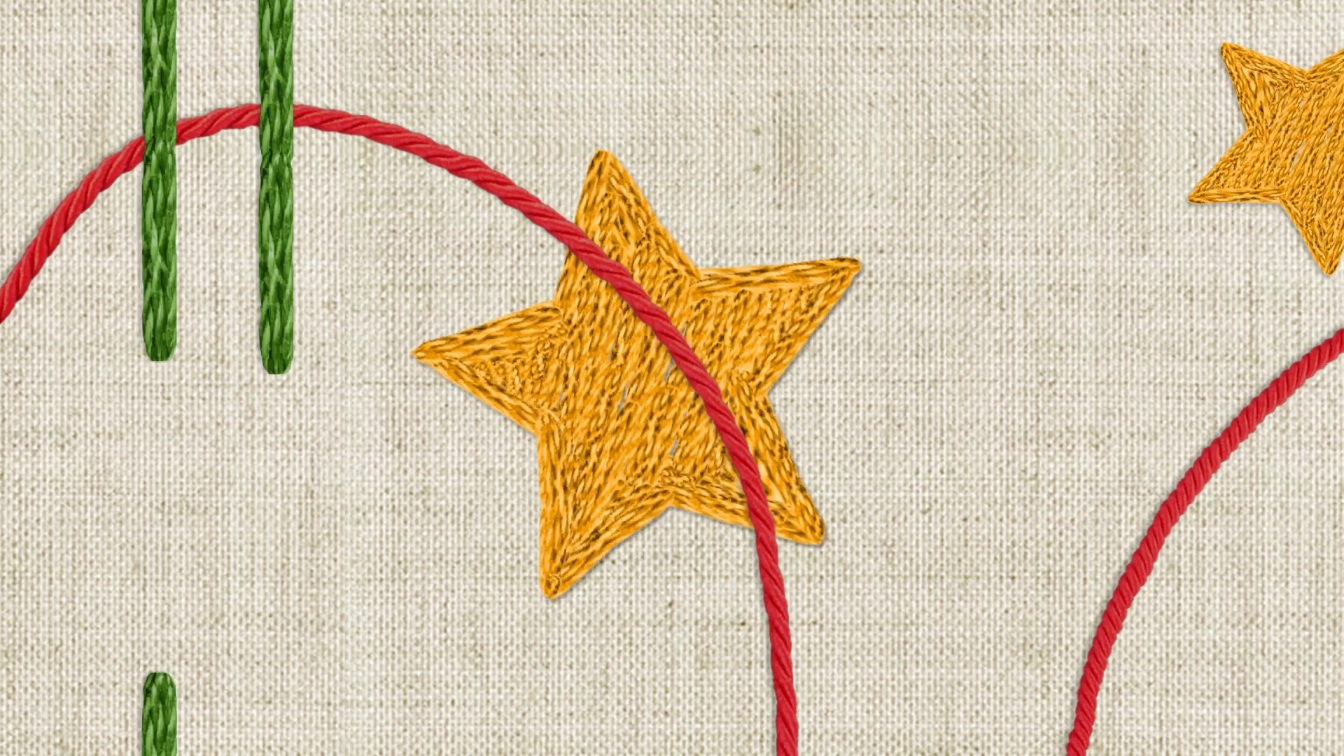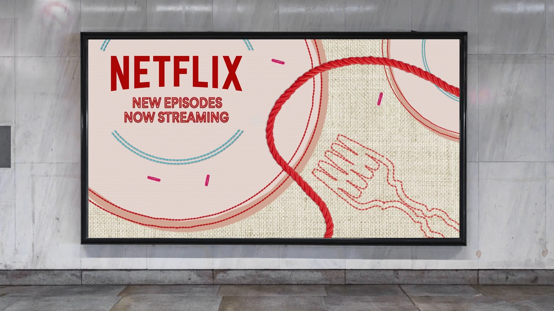The sequence follows woven stars as they pass by baking elements from a top down view. The movement of the show’s winner “star baker” unfolds on a dining table.