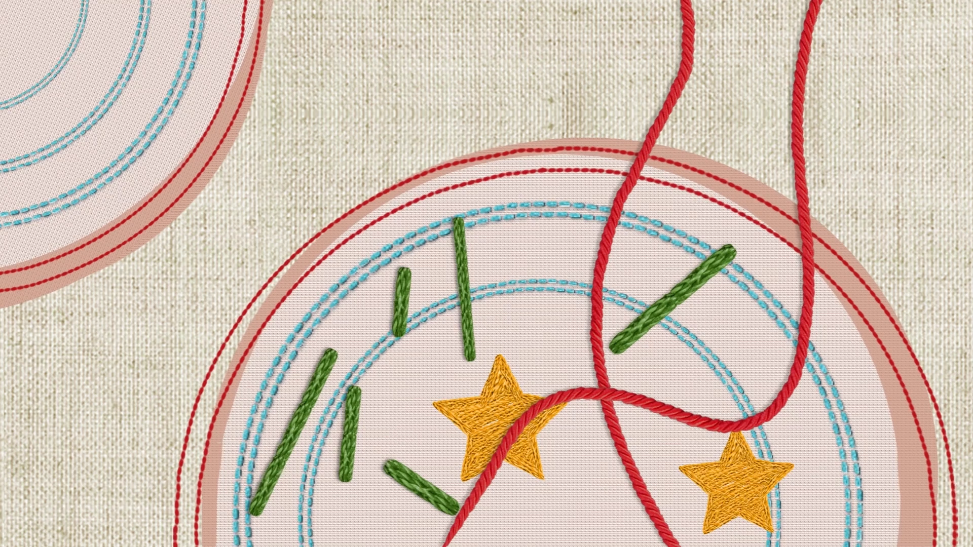 The Great British Bake Off, is a well known British baking show. It is beloved for its comforting ambiance. I want to showcase the essence of "home" through a tactile, earthy approach, using elements like stitching, threads, and homemade aesthetics that evokes the handmade nature of baking. The visuals will feature a soft, muted color palette and textured backgrounds, bringing a sense of depth and texture to the piece.